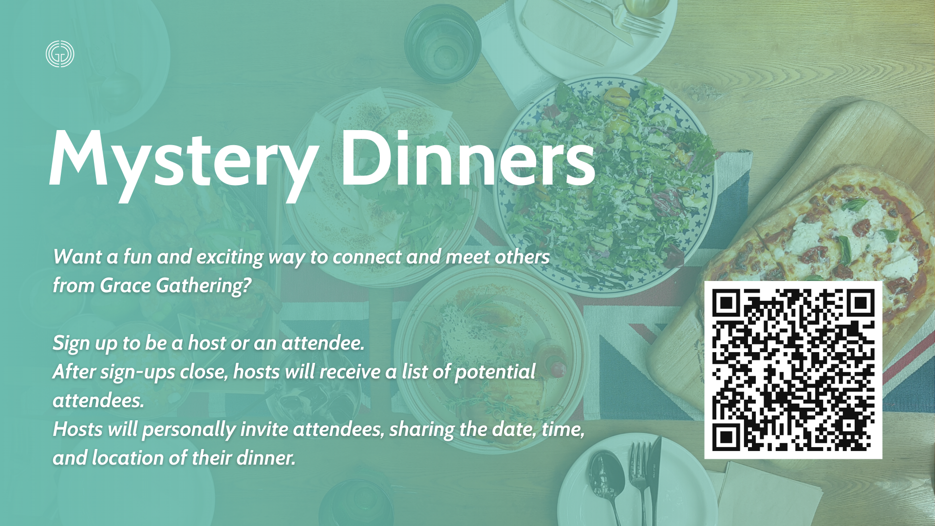 Join us for a Mystery Dinner—a fun and engaging way to connect with others at Grace Gathering East! Sign up today to host a dinner in your home or attend a dinner. Whether you’re a host or attendee, plan for a great time of fun, food, and fellowship!